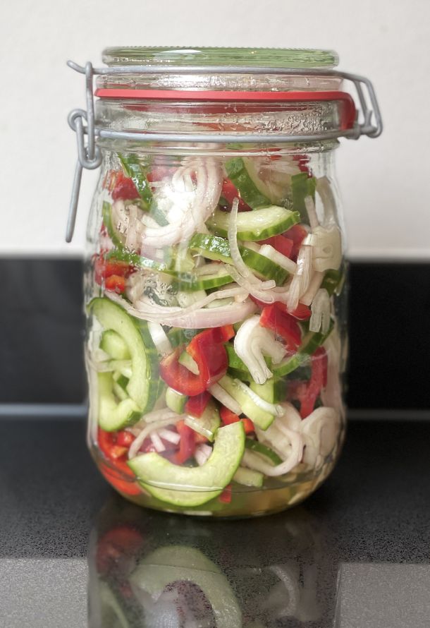 Een overheerlijk en makkelijk Indonesisch tafelzuur die bij een pittige gerecht een goede tegenhanger is, ook wel gewoon komkommersalade genoemd. Deze saldo is zeer eenvoudig te maken en meerdere dagen houdbaar in de koelkast. Tip: maak hem een dag van te voren.